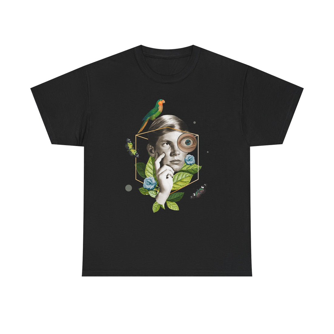 Man with parrot - Quirky Collage - T-Shirt Front Print