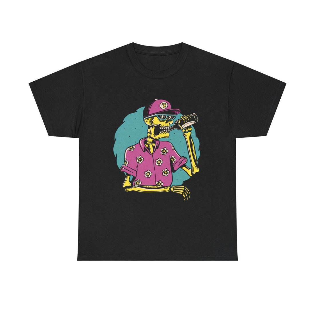 Drinking Skull in Hawaii - Summer Skulls - T-Shirt Front Print