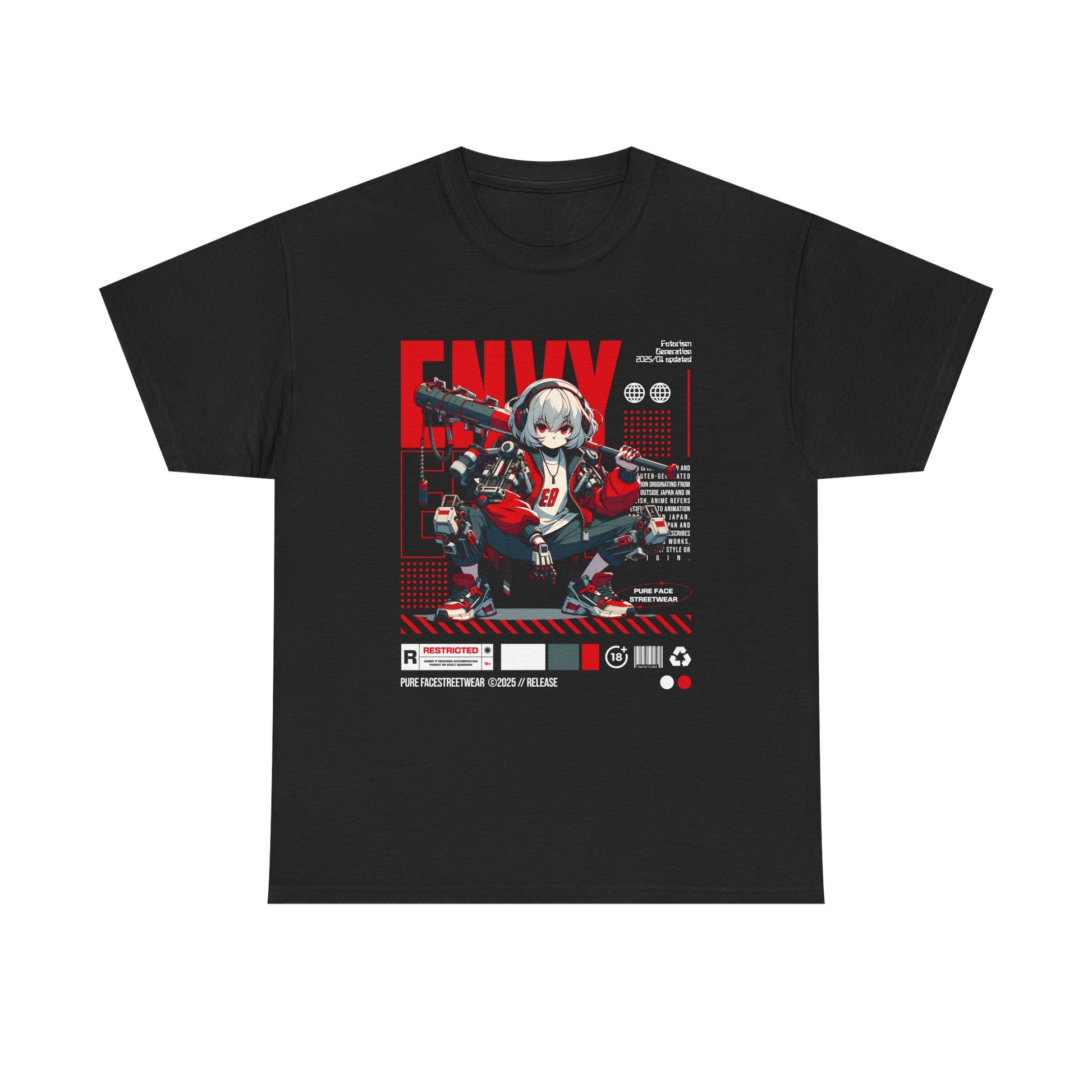 Das ENVY Cyborg Anime Girl with Basball Bat T-Shirt mit Front Print fühlt sich vom ersten Moment an vertraut an. Gefertigt aus dicht gewebter 100 % Baumwolle überzeugt es durch angenehme Haptik, Formstabilität und einen modernen Medium-Fit – weich, robust und ideal für den Alltag.