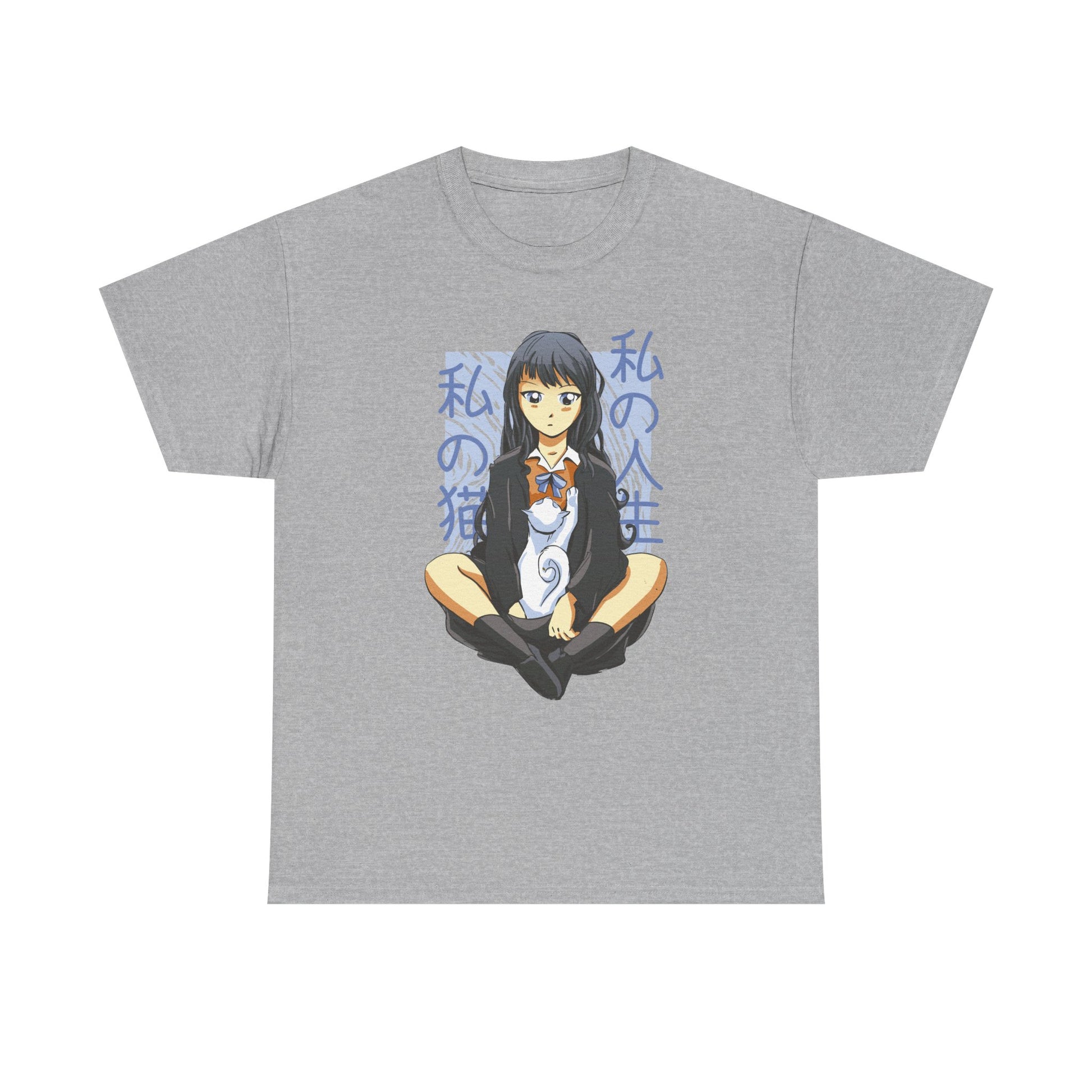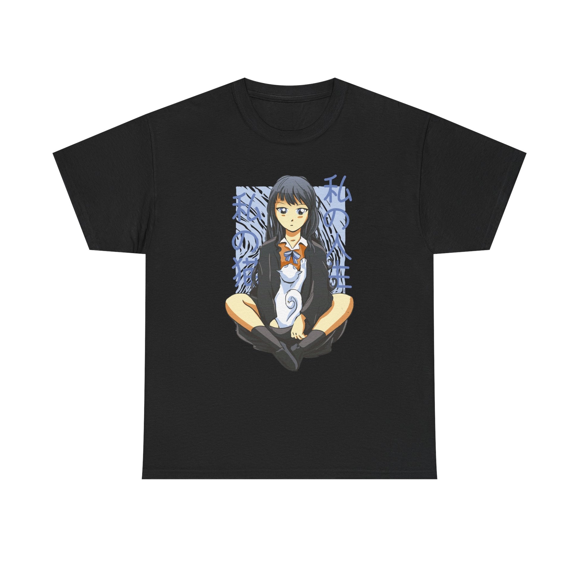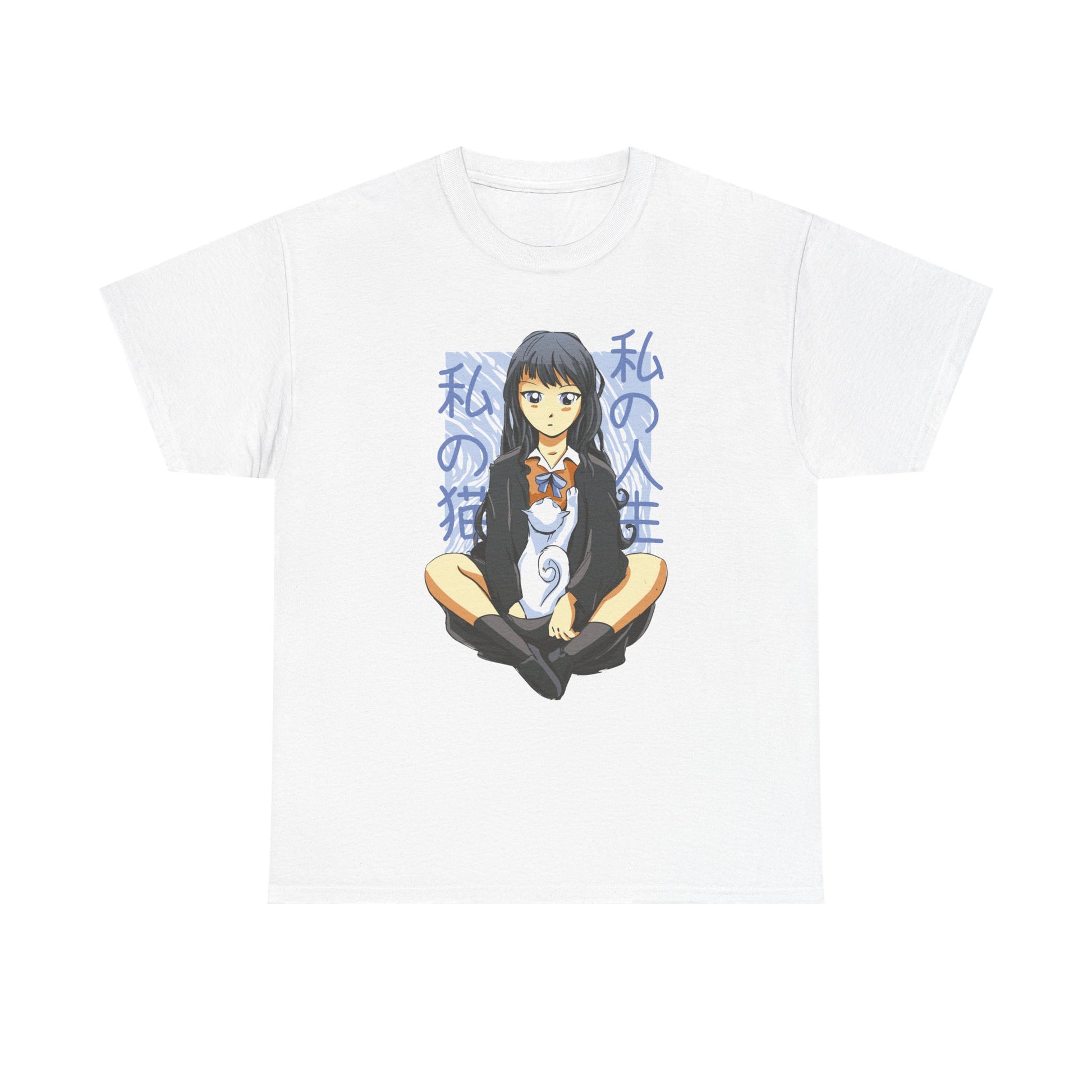 Girl with white Cat - Anime Zone - T-Shirt Front Print