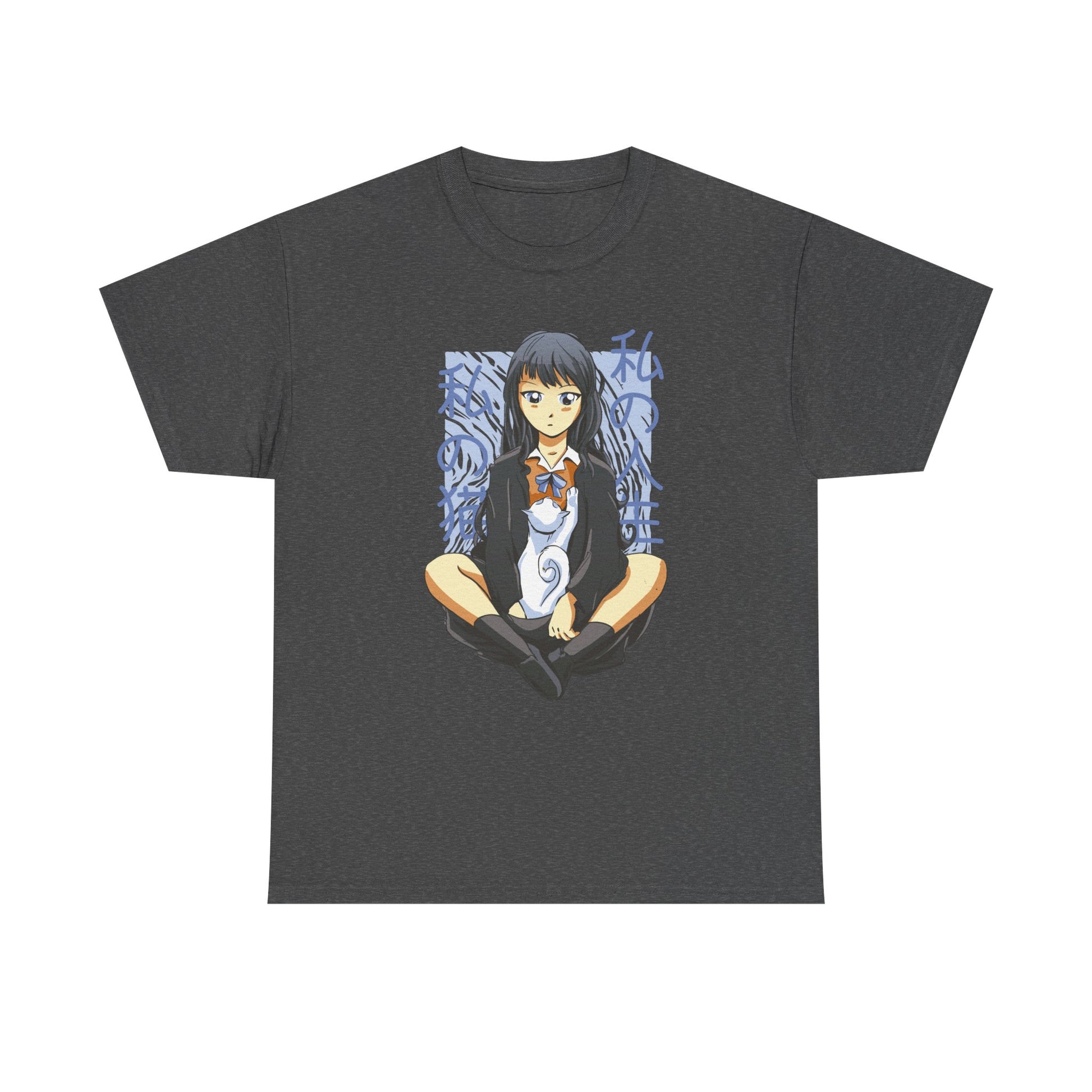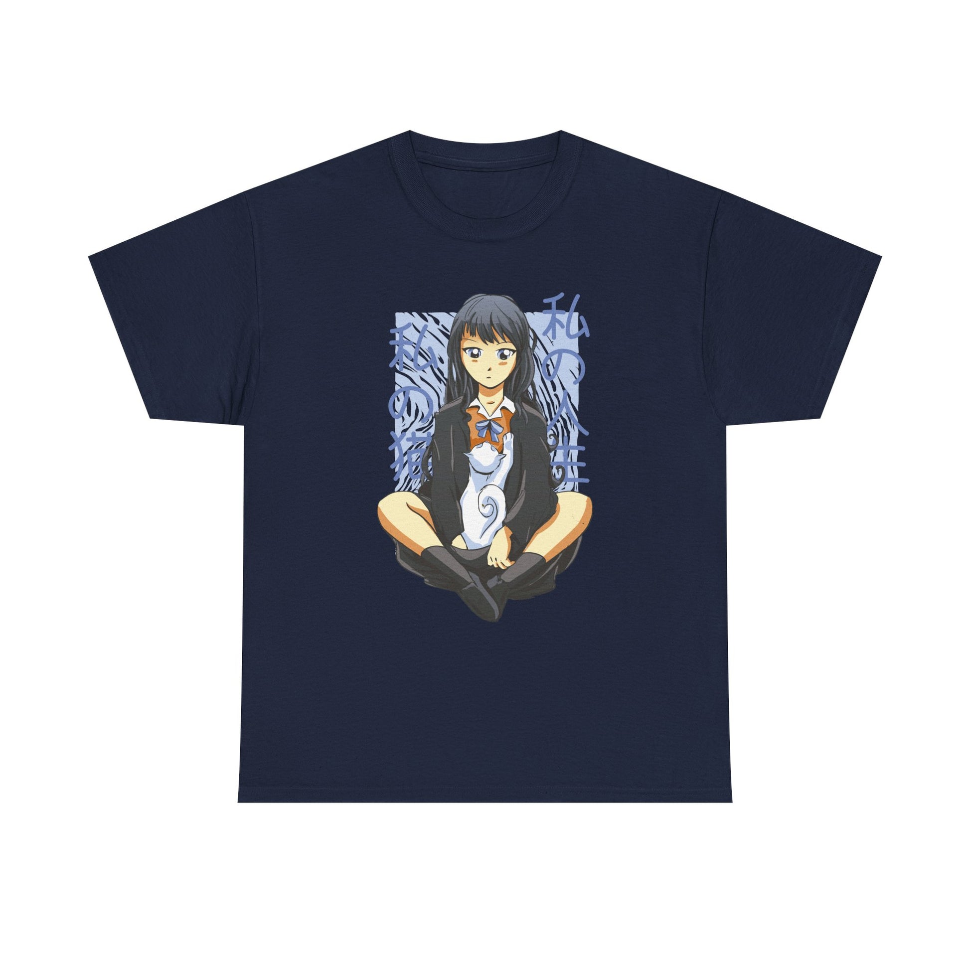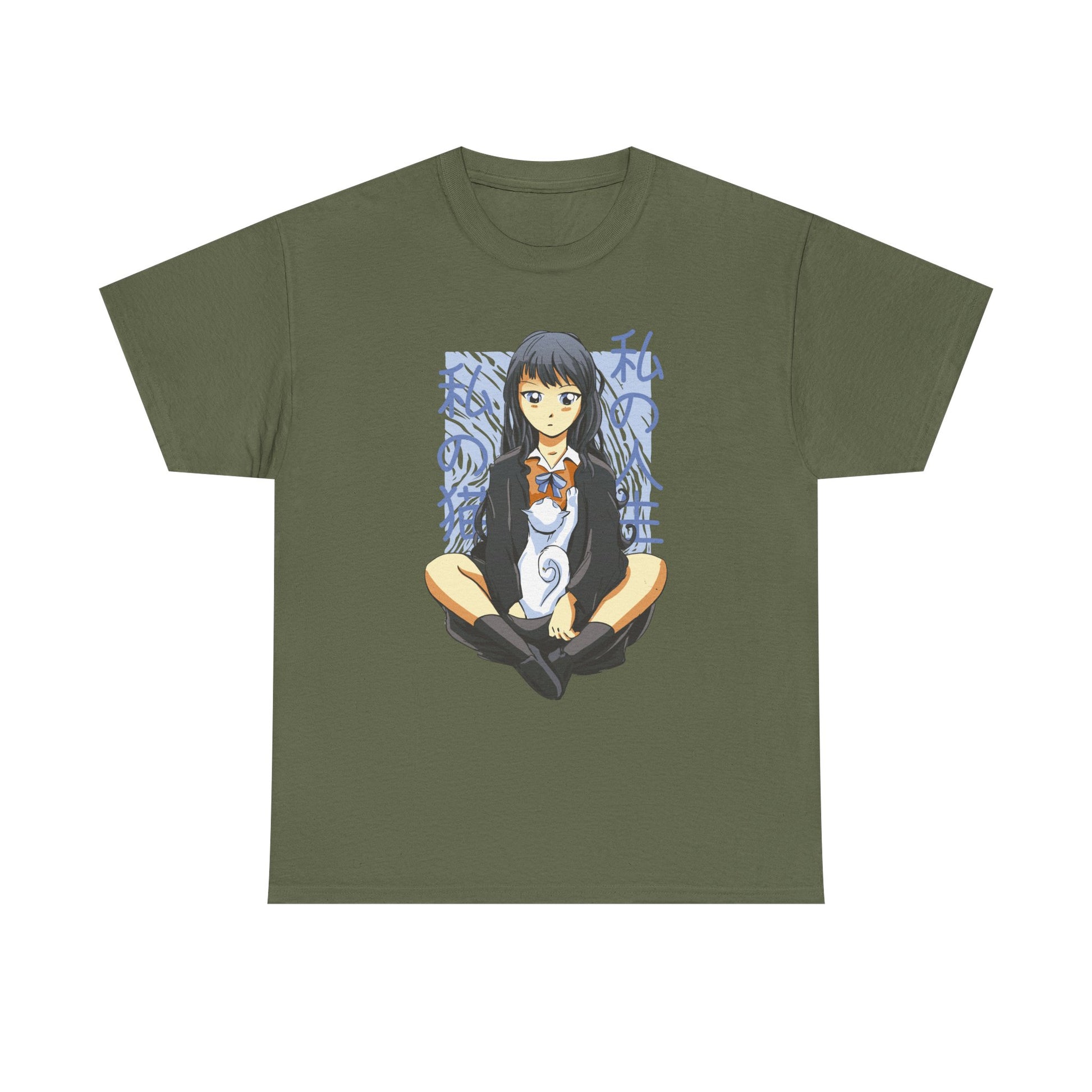 Girl with white Cat - Anime Zone - T-Shirt Front Print