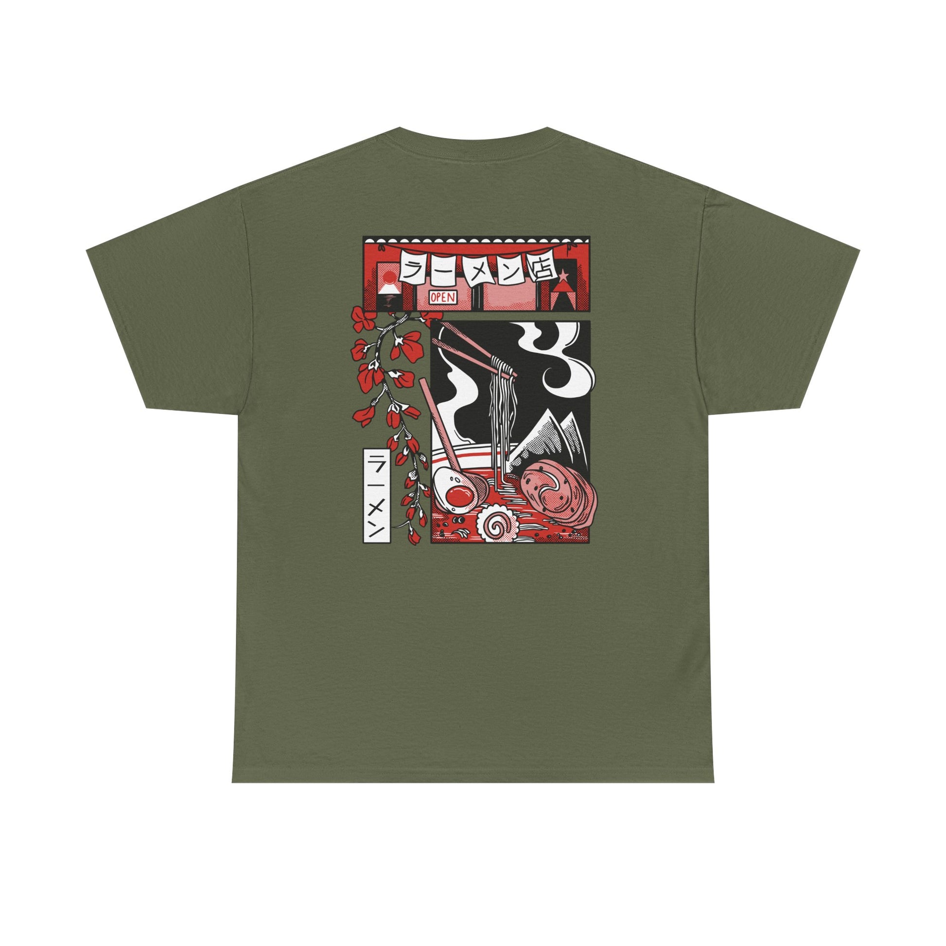 Das Ramen (Rāmen-ten) T-Shirt mit Back Print fühlt sich vom ersten Moment an vertraut an. Gefertigt aus dicht gewebter 100 % Baumwolle überzeugt es durch angenehme Haptik, Formstabilität und einen modernen Medium-Fit – weich, robust und ideal für den Alltag.