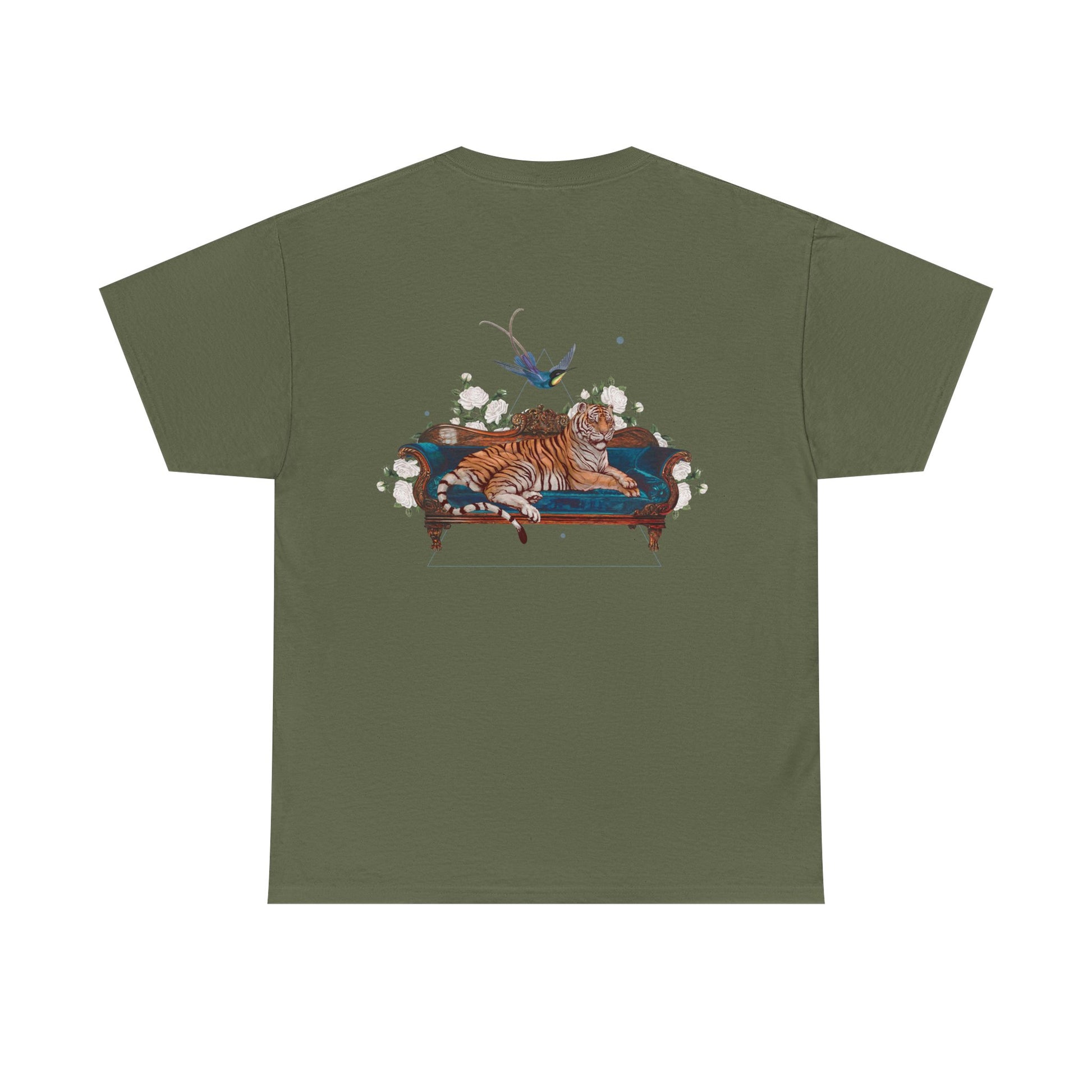 Das Tiger on the Couch T-Shirt mit Back Print fühlt sich vom ersten Moment an vertraut an. Gefertigt aus dicht gewebter 100 % Baumwolle überzeugt es durch angenehme Haptik, Formstabilität und einen modernen Medium-Fit – weich, robust und ideal für den Alltag.