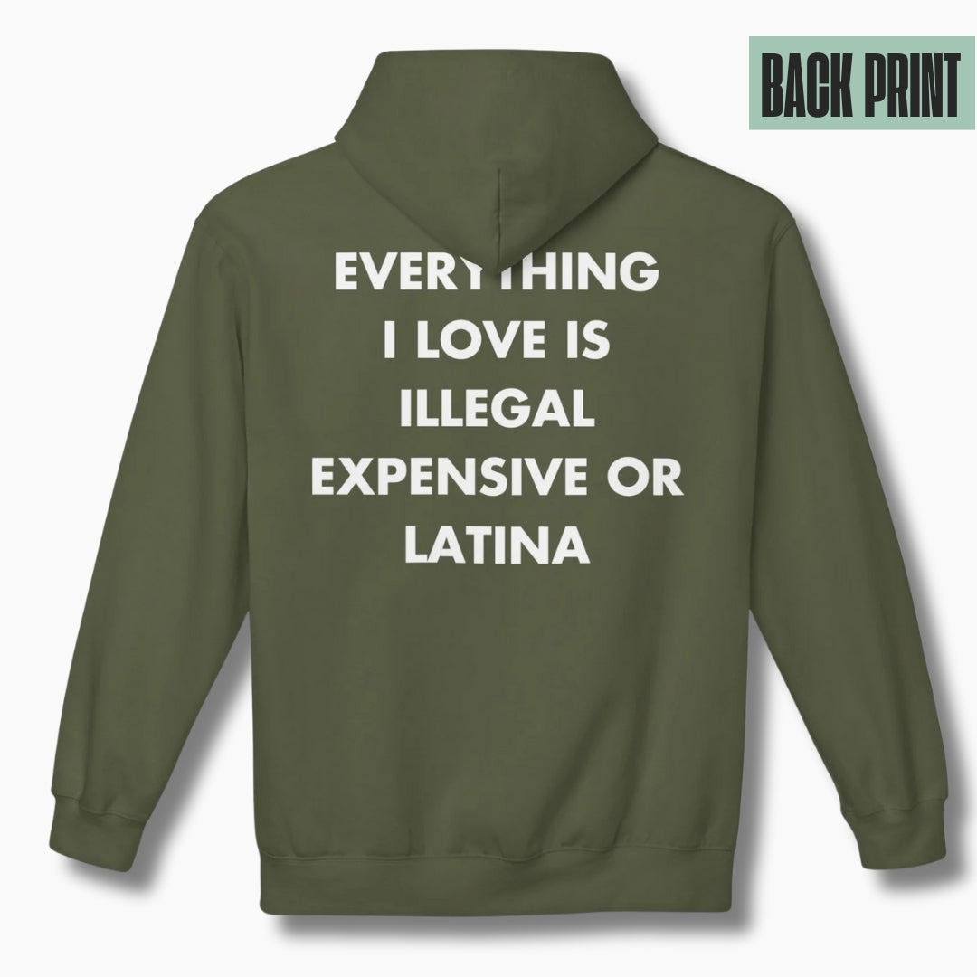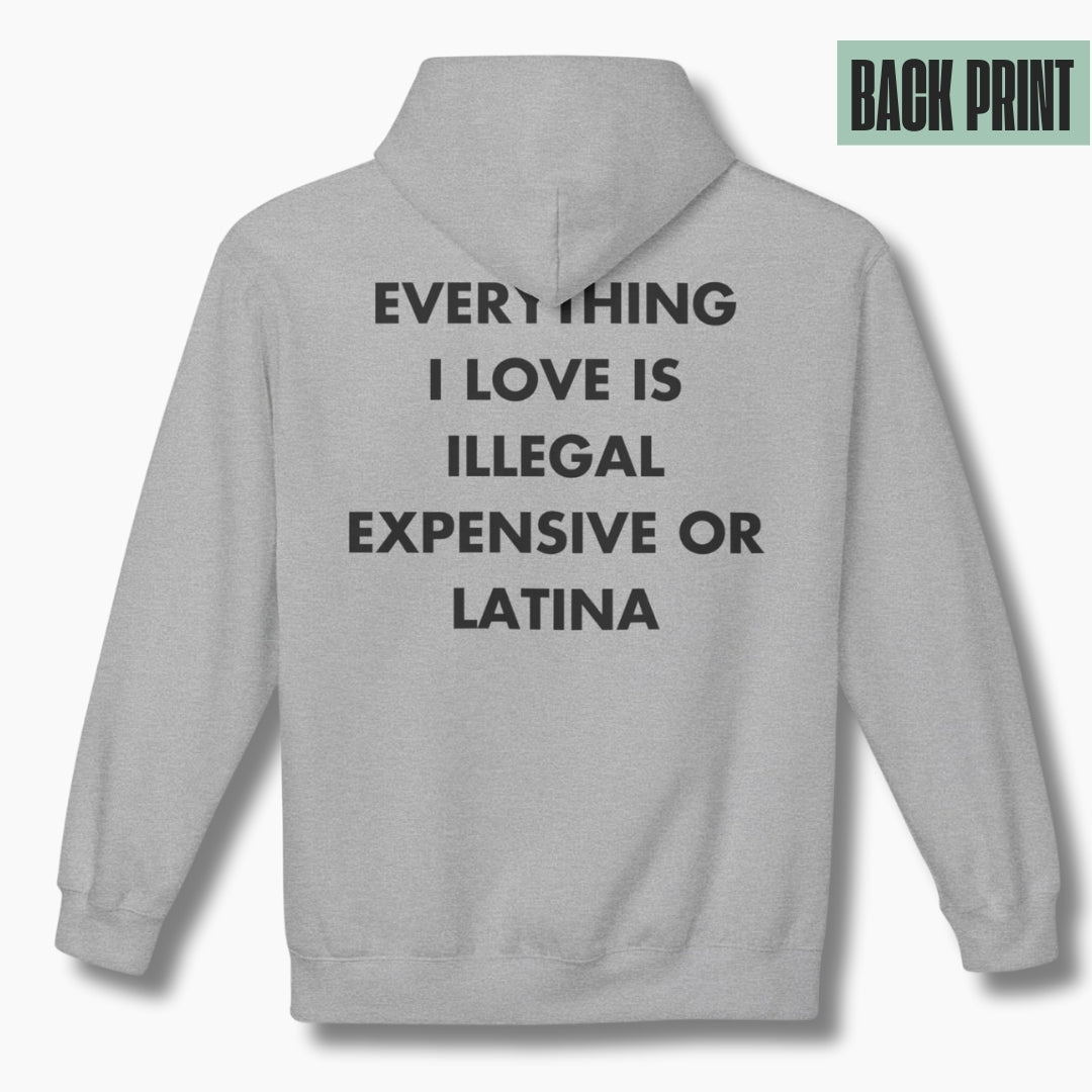 EVERYTHING I LOVE IS ILLEGAL, EXPENSIVE OR LATINA - Everything I Love - Premium Unisex Hoodie Back Print