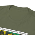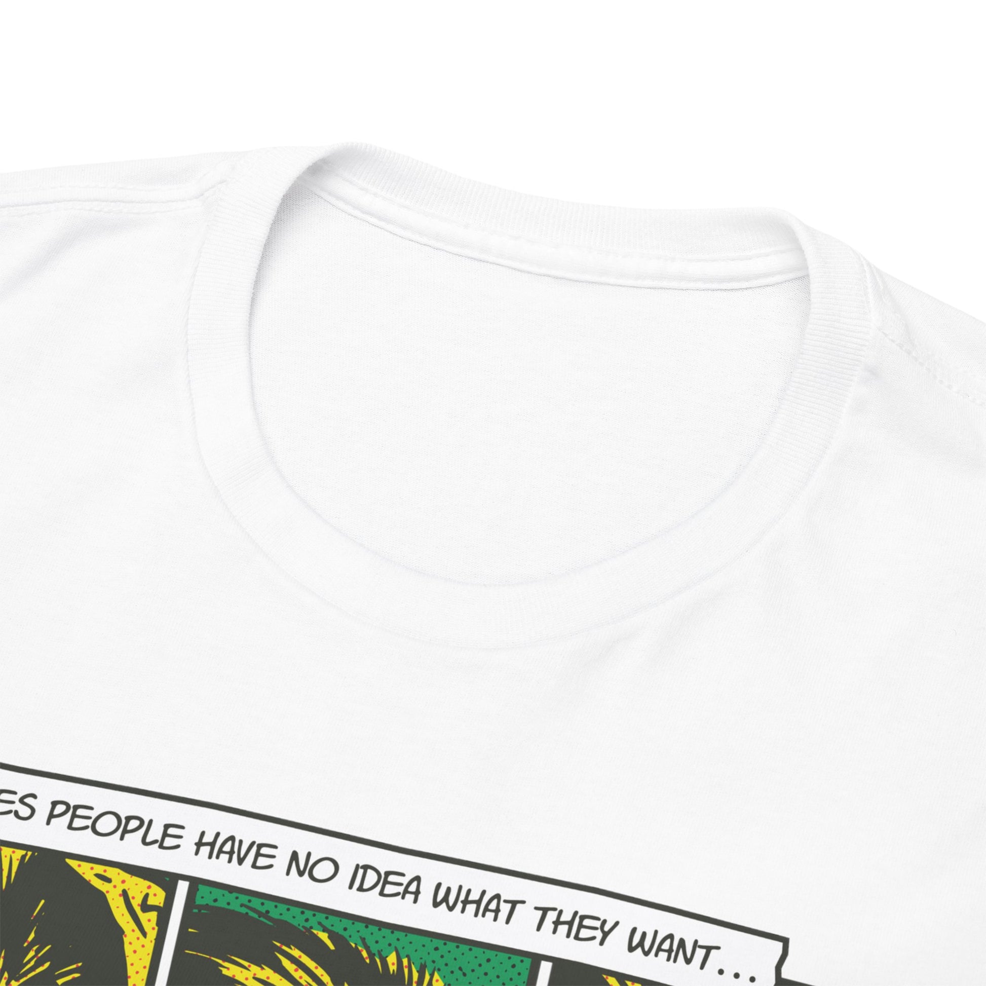 Man merkt direkt, dass das T-Shirt aus dichter Baumwolle ist. Echt angenehm zu tragen und kratzt nirgendwo, weil das Label komplett entfernbar ist. Das Design sieht klar und sauber aus, ohne dass es übertrieben wirkt.