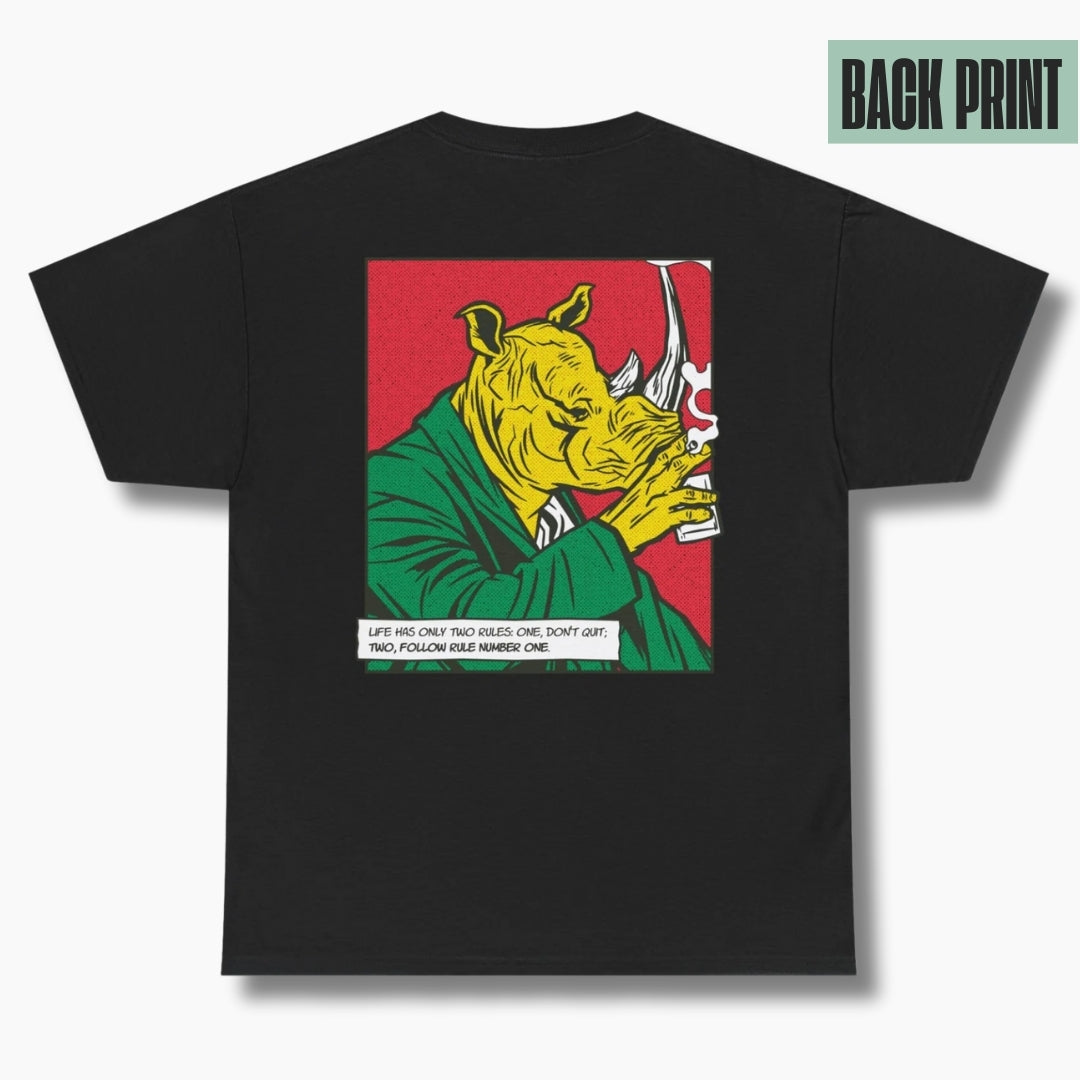 Rhinoceros drinking Whiskey - Comic Mafia - Premium Unisex T-Shirt Back Print