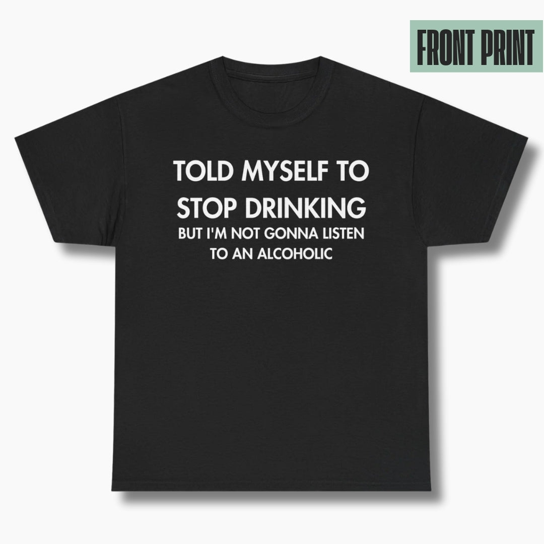 TOLD MYSELF TO STOP DRINKING. BUT I'M NOT GONNA LISTEN TO AN ALCOHOLIC - Everything I Love - Premium Unisex T-Shirt Front Print