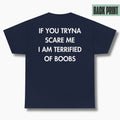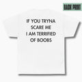 IF YOU TRYNA SCARE ME. I AM TERRIFIED OF BOOBS - Everything I Love - Premium Unisex T-Shirt Back Print