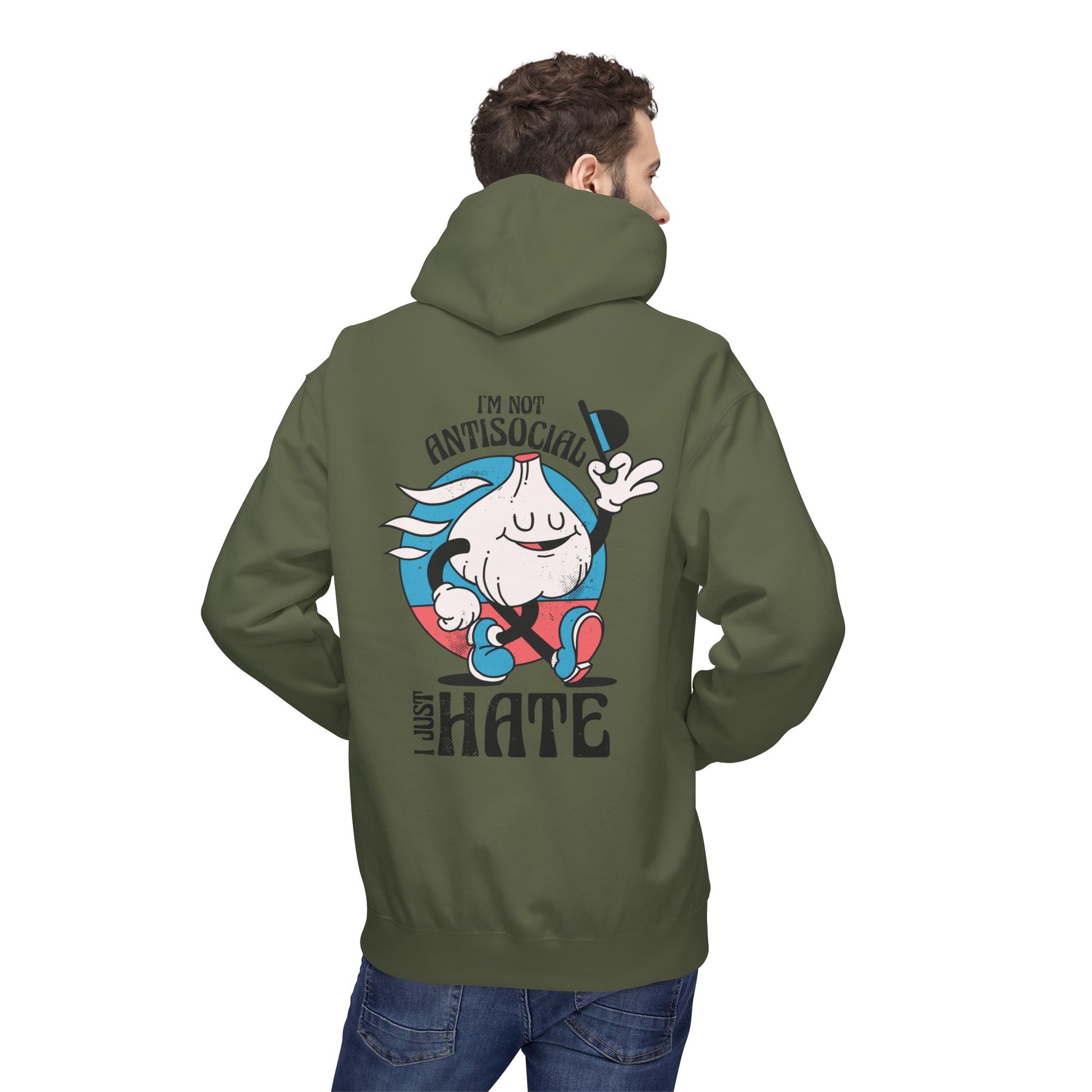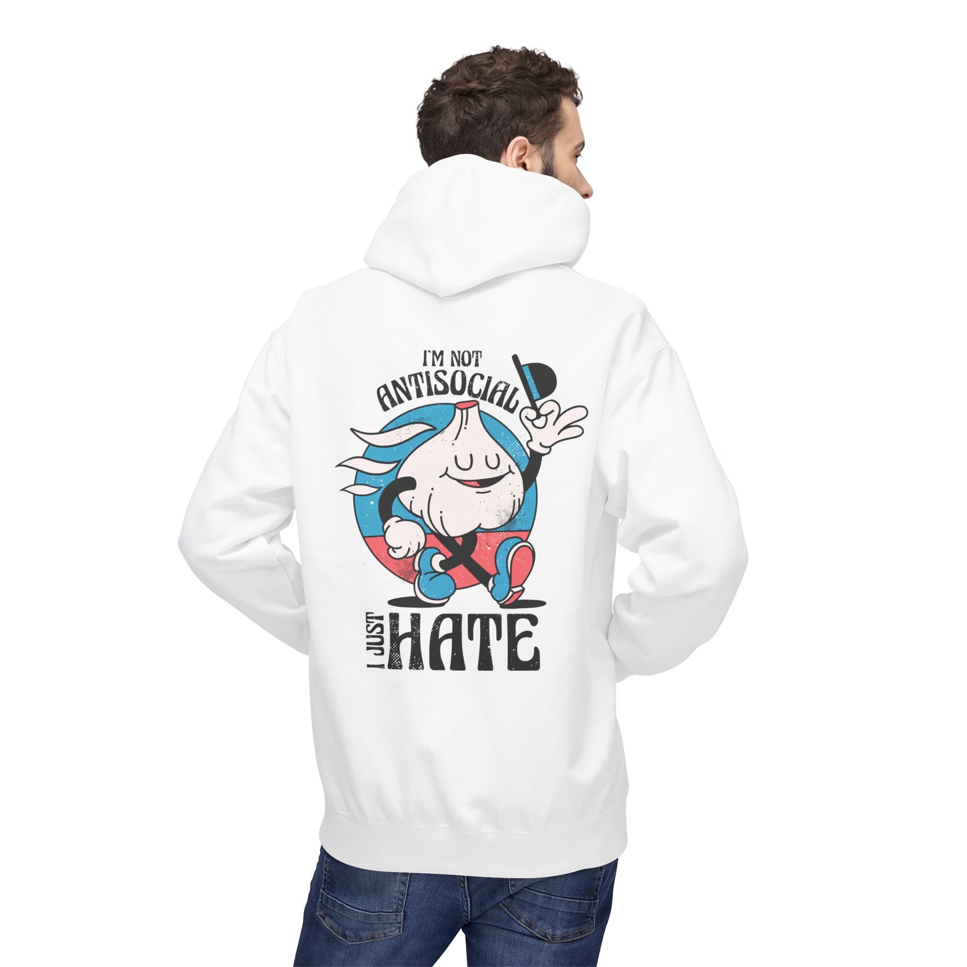 I´m not Antisocial I just hate - Antisocial Retro - Premium Unisex Hoodie Back Print