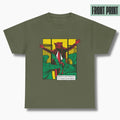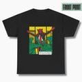 Man merkt direkt, dass das T-Shirt aus dichter Baumwolle ist. Echt angenehm zu tragen und kratzt nirgendwo, weil das Label komplett entfernbar ist. Das Design sieht klar und sauber aus, ohne dass es übertrieben wirkt.